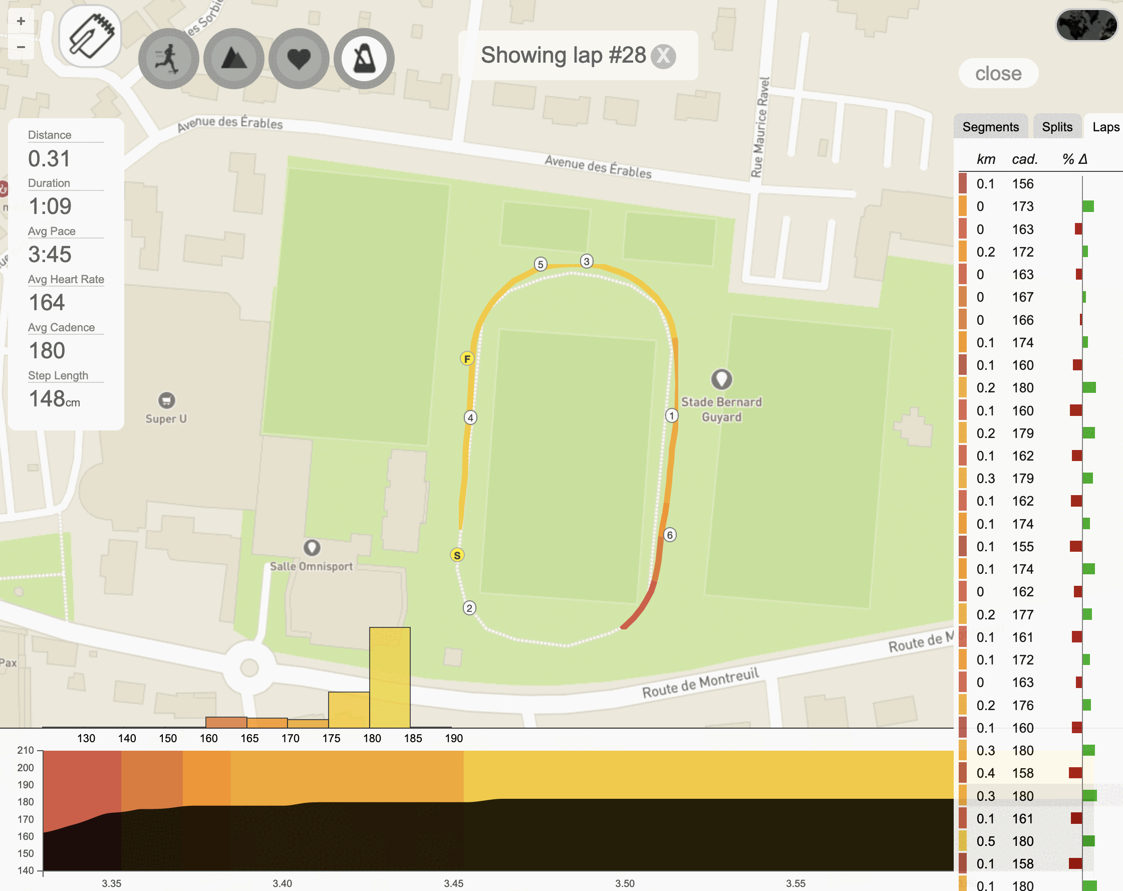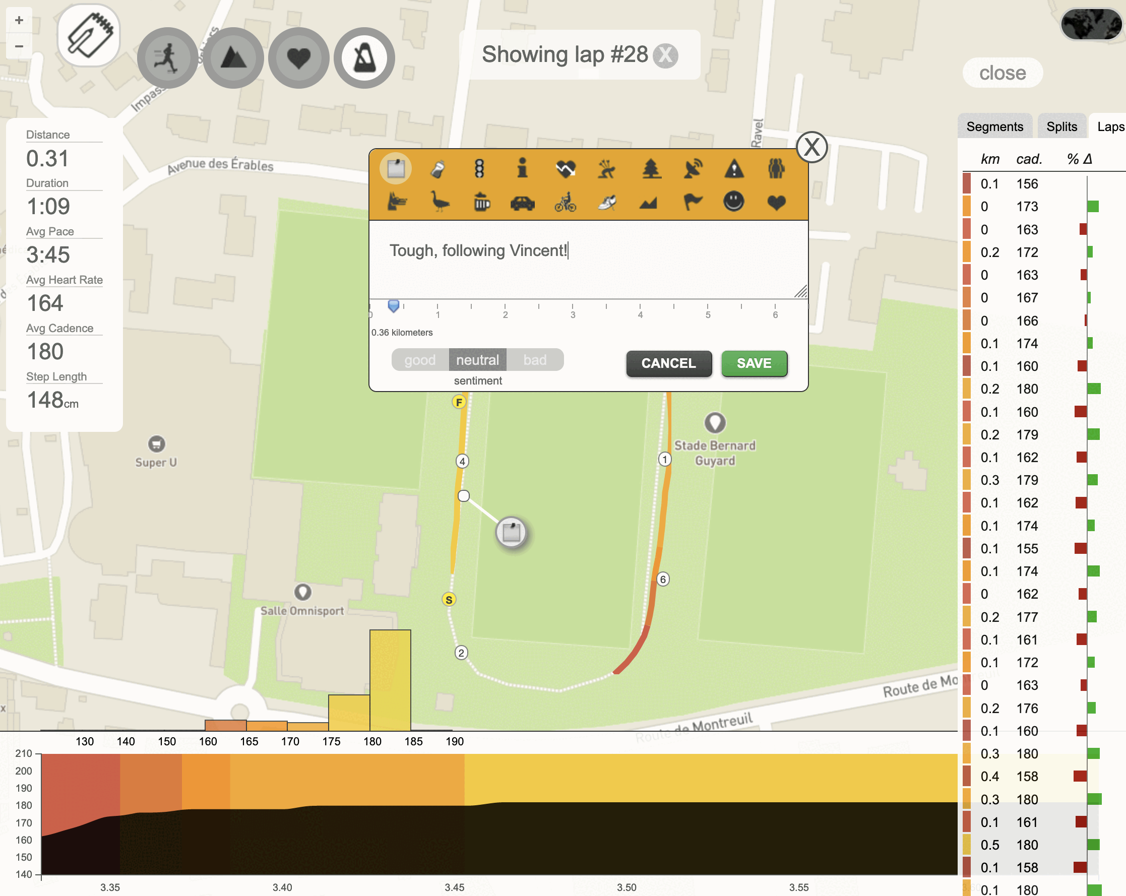 This is really one of the SmashRun features which I like and use the most - really allows you diving into a specific part of a run and get a lot of details, in a super easy and friendly manner.