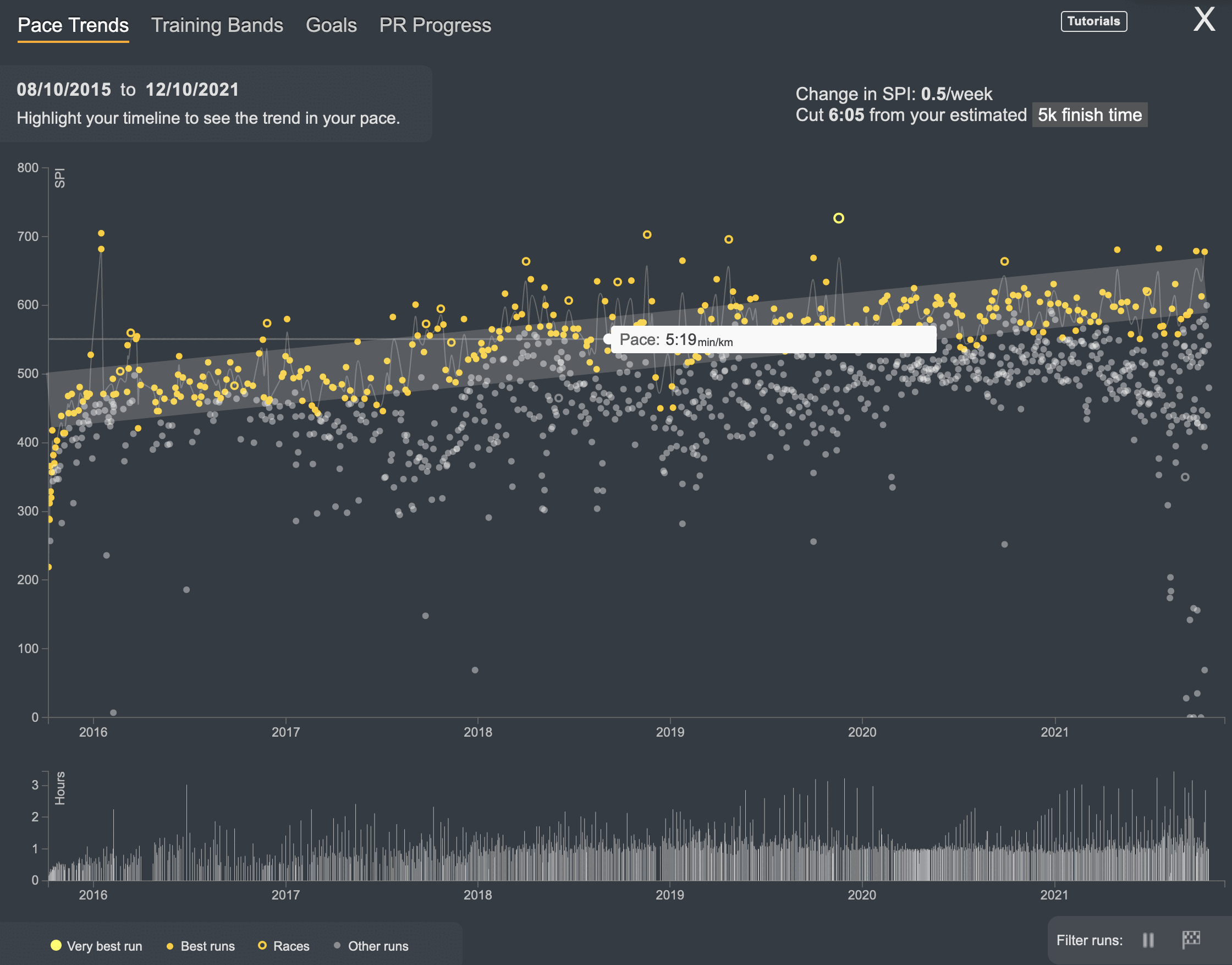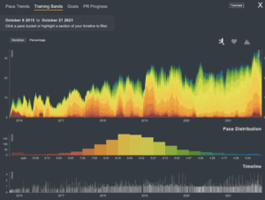 Training Bands allows getting a better idea about how your overall training is going, whether you increased or decreased it, how hard you're training, looking at your speed, heart rate or elevation.