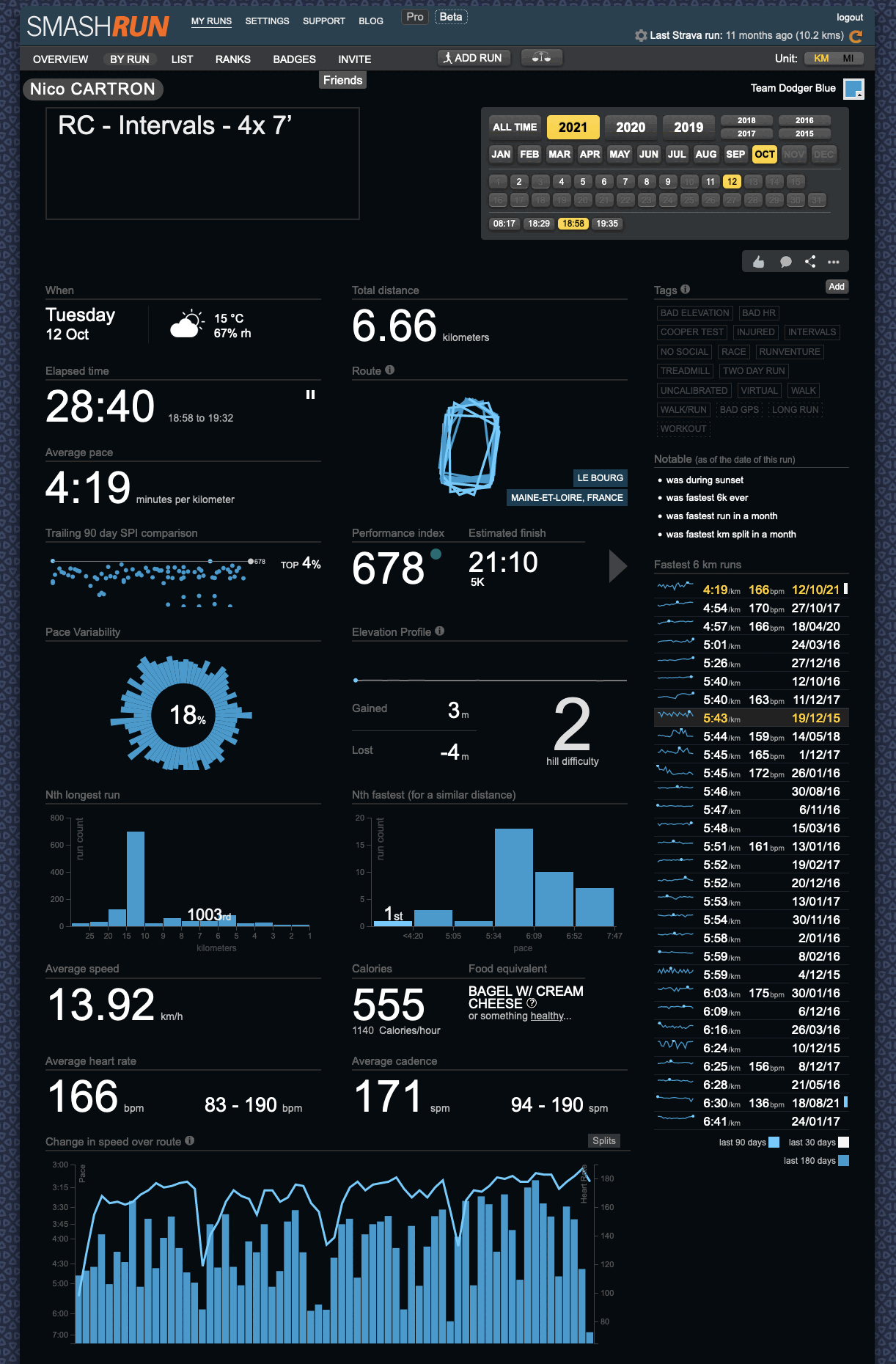 Once your run is imported, you can litterly deep dive into it, thanks to SmashRun very detailed statistics.