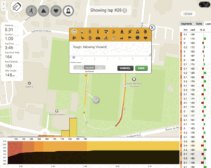 - Number of stops/pauses: a mouse over will show details, and you can remove those stops if you want (e.g. if that was a race) to get the real time elapsed displayed