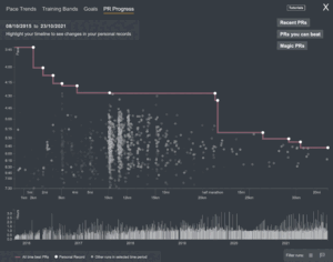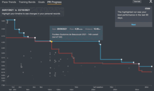 PR Progress allows seeing your PR (Personal Records), and see which ones you can beat:
