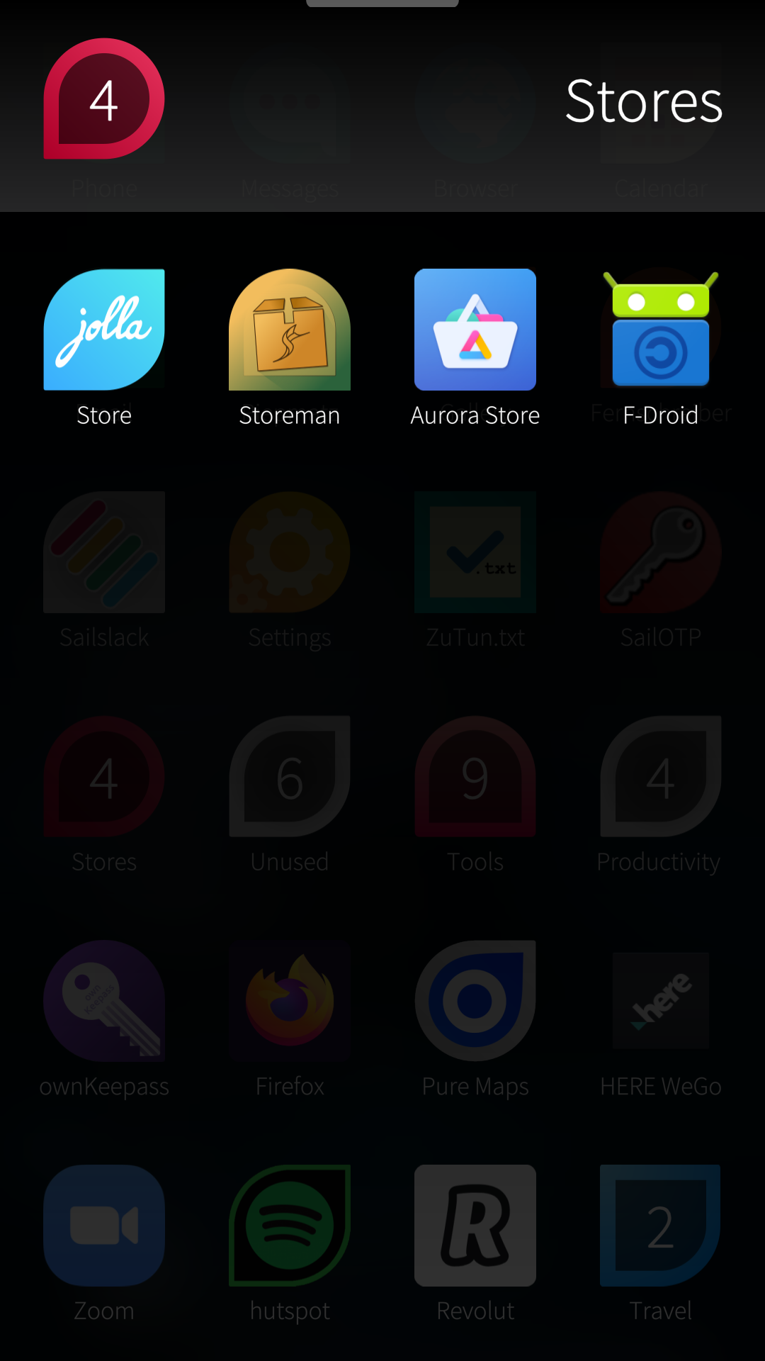 As you can see below, all my apps are contained in 2 pages of the SFOS App