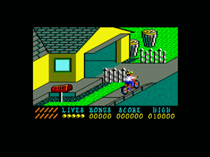 Paper Boy is a very well known game, where you're a newspaper delivery boy riding his bicycle to deliver... well, newspaper to your customers.