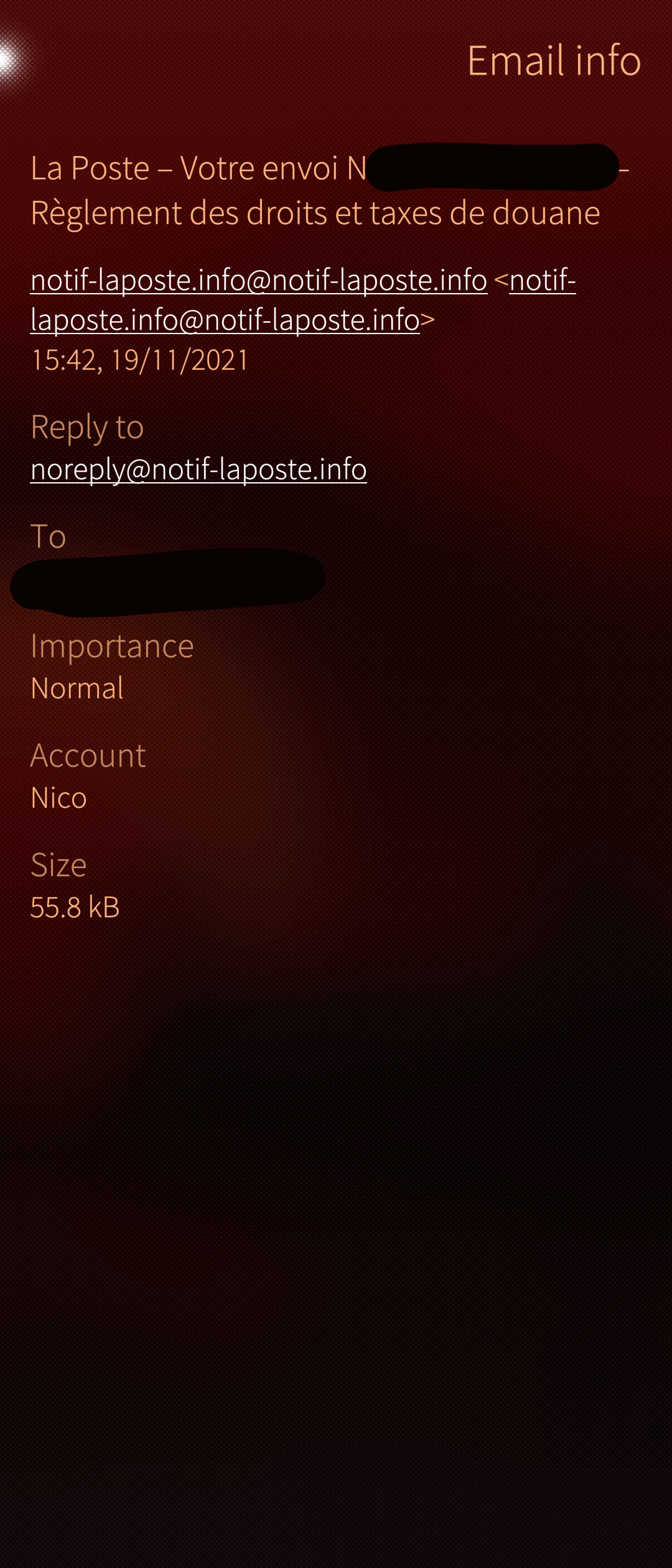 demandé "pourquoi ?", elle m'a répondu "l'email en @notif-laposte.info c'est