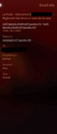 Je reçois un email provenant de La Poste, avec comme titre: