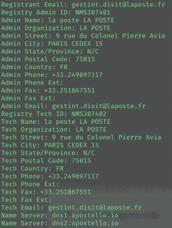 - les serveurs de noms indiqués (dns1|dns2.apostello.io) correspondent à ceux relevés précédemment.