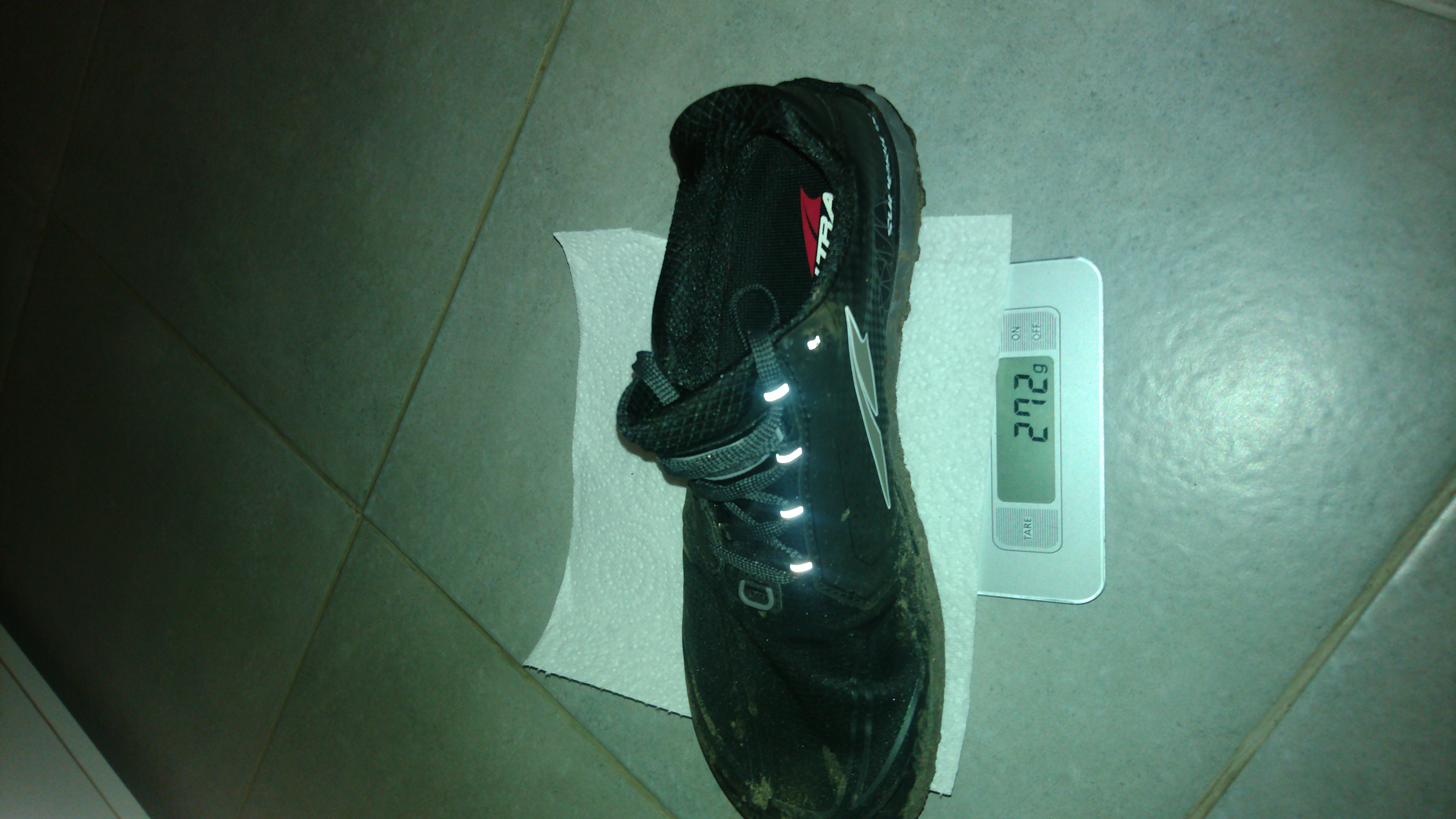Bien entendu, il faut retirer quelques grammes car les chaussures ne sont pas neuves et ont un peu de boue ;)