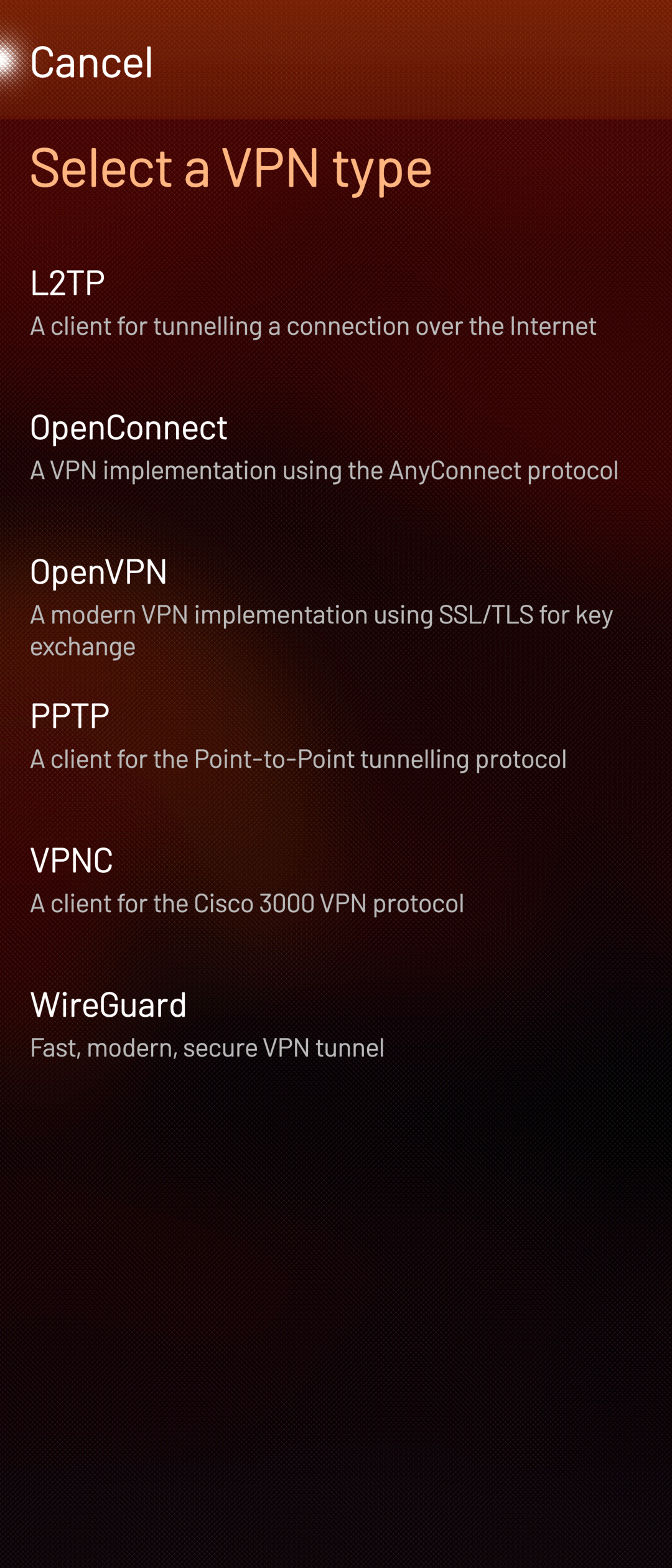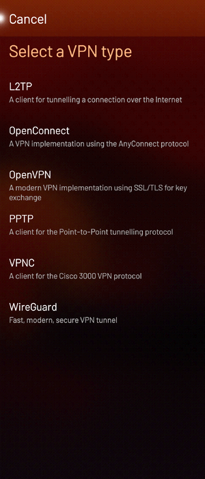 Once you have WireGuard installed, head over to Settings > System > VPN, and use Pulley menu > Add new VPN:
