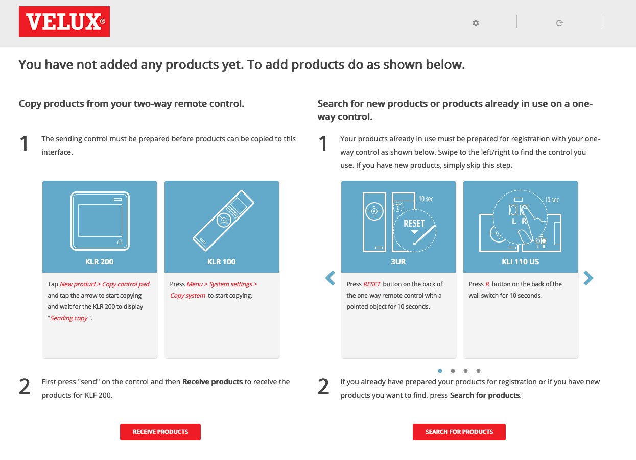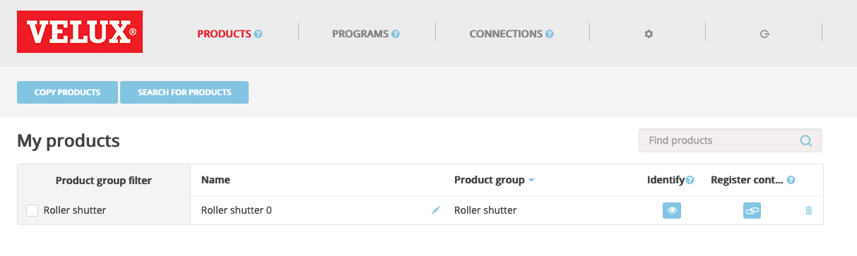 To add e.g. a new roller shutter, you just have to select "search for products", and follow the procedure for your specific product.