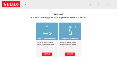 You then have to choose whether you want to use the KLF-200 as "repeater" (to extend signal range), or as "interface", i.e. directly controling io-homecontrol devices. I'll be using the later.